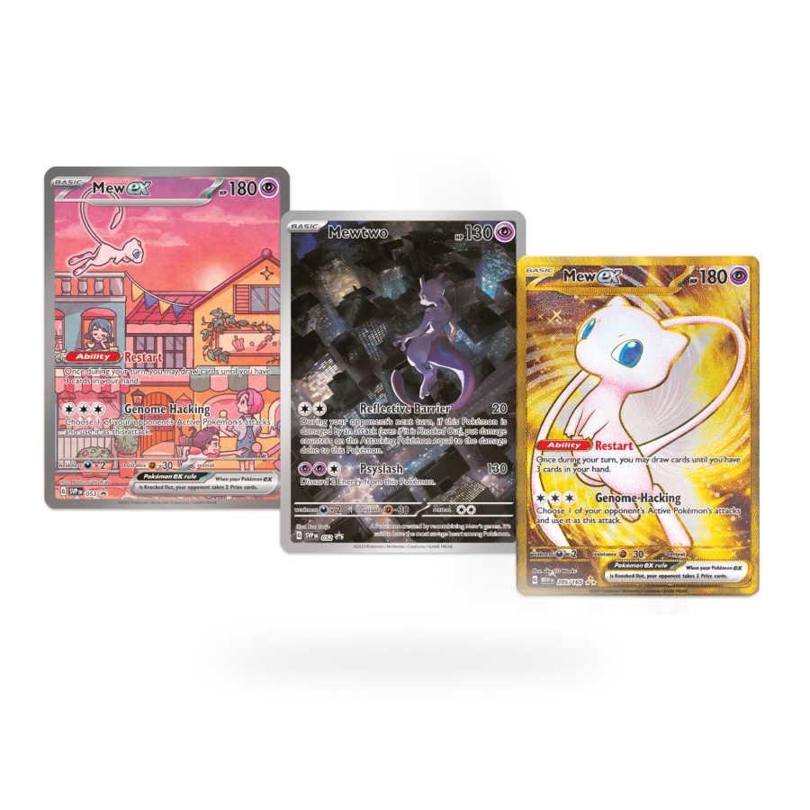 Pokémon TCG: Scarlet & Violet 151 Ultra Premium Collection Mew - prémiové balení karetní hry Pokémon je speciální balení 16 boosterů Pokémon 151, 3 vzácných promo karet Mew (kovové karty Mew ex, foilové karty Mew a full-art foilové karty Mew), hrací podložky a krabičky na karty s krásným motivem Pokémon setu 151, mince, kostek a žetonů. Tento prokudkt nesmí chybět v žádné sbírce pravého sběratele Pokémon karet. Zavzpomínejte na sadu prvních 151 Pokémonů v prémiovém balení, které vám nabídne vše, co se vám hodí ke hře i sbírání Pokémonů. Roztomilý a nepolapitelný Pokémon Mew v provedení tří vzácných karet je tu pro vás!