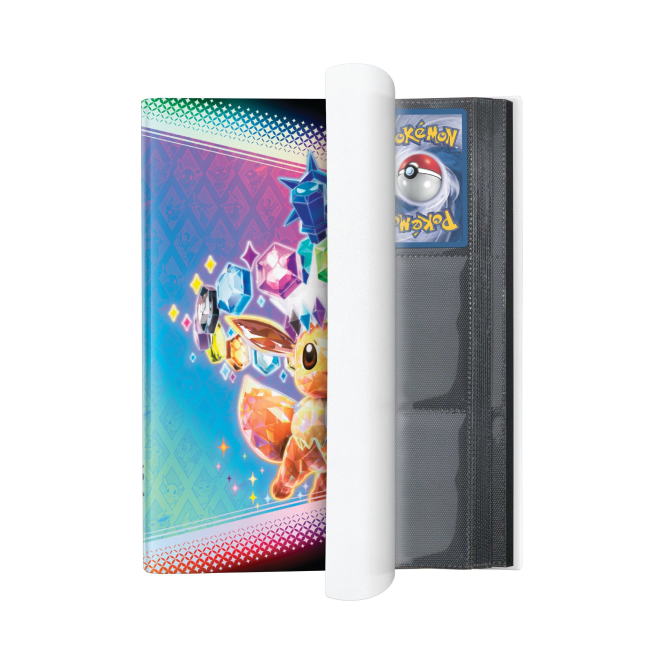 Elegantní sběratelské album velikosti A4 s motivem edice Scarlet & Violet Prismatic Evolutions, do kterého se vejde až 360 karet díky 20 všitým stránkám, z nichž každá pojme 18 karet. Album je vybaveno elastickým uzavíracím popruhem a kapsami s bočním plněním, které zabraňují vypadnutí karet během přepravy.