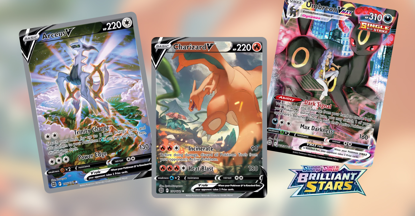 Edice Sword and Shield 9 - Brilliant Stars vyšla 25. 2. 2022, obsahuje více než 170 karet včetně 20 nových Pokémonů V, 3 silných Pokémonů VMAX a 4 Pokémony se zbrusu novou mechanikou VSTAR. Jde o 8. edici z nové generace Sword and Shield, která vychází z videohry Pokémon Sword and Shield, a představuje nám nové Pokémony 8. generace a nové Pokémony V, VMAX a VSTAR.