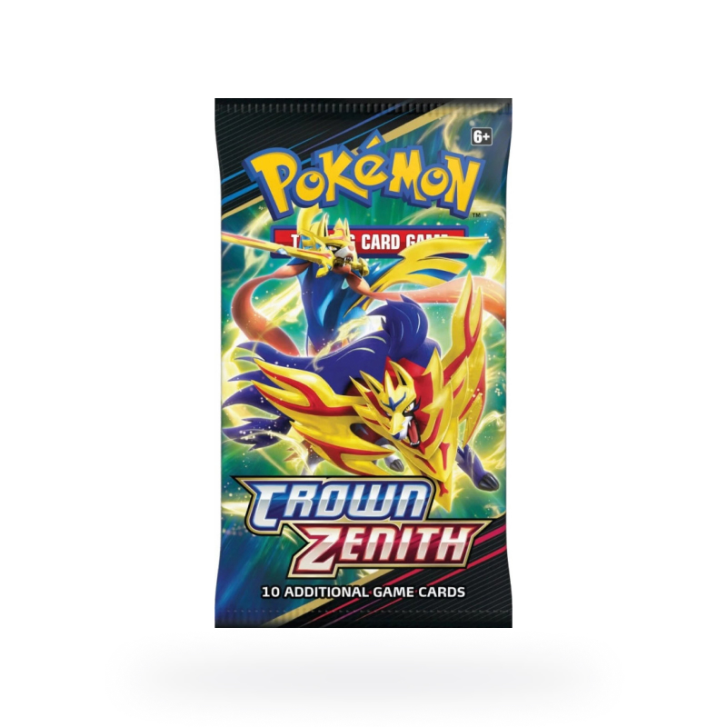 Pokémon Booster z edice Crown Zenith je základní doplňkový balíček karetní hry Pokémon, který nabízí hráčům možnost rozšířit si svoji sbírku Pokémonů o nové karty. V každém balíčku je 10 náhodných karet. Pokud budete mít štěstí, narazíte i na silné Pokémony VSTAR!