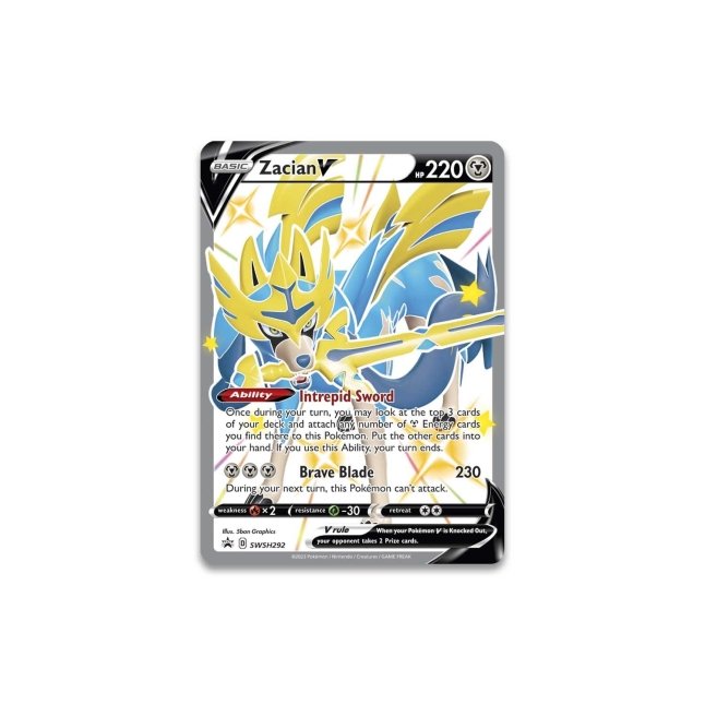 Pokémon Premium Figure Collection—Shiny Zacian je jediný způsob, jak do sbírky získat figurku legendárního Pokémona Zacian v jeho Shiny podobě! Lákadlem je zároveň shiny karta Zaciana V spolu s jeho herními obaly a odznáčkem. V této kolekce se nachází velké množství Crown Zenith Boosterů.