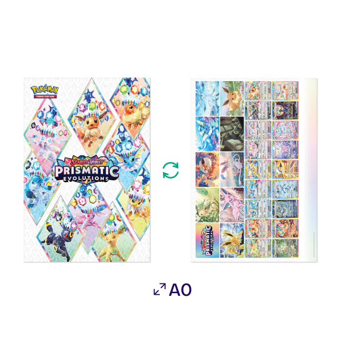 Oboustranný plakát s motivy oblíbeného Pokémona Eevee a veškerých jeho evolucí ze setu Prismatic Evolutions, který dokonale doplní výzdobu pokoje každého trenéra.