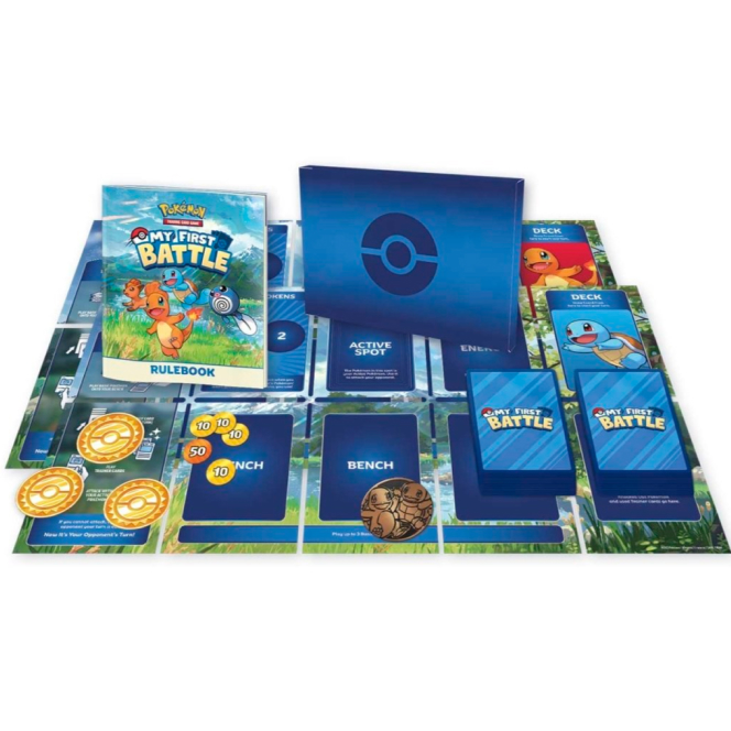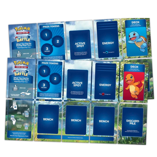 My First Battle set je k dispozici ve dvou verzích: Charmander vs Squirtle (toto balení) nebo Bulbasaur vs Pikachu
