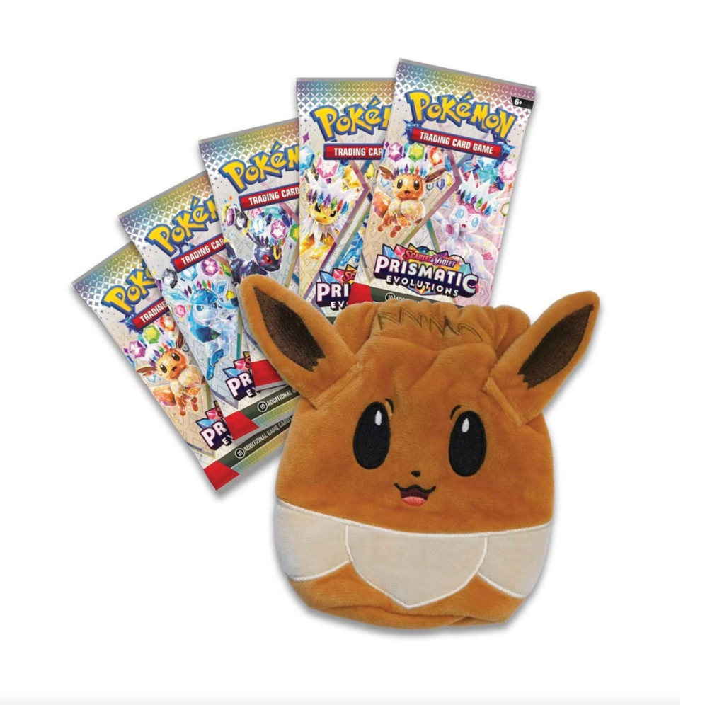 Pokémon Prismatic Evolutions Accessory Pouch Special Collection obsahuje pět boosterů z edice Prismatic Evolutions a elegantní plyšovou taštičku ve tvaru Pokémona Eevee. Tato taštička je ideální pro uchovávání kostek, herních doplňků, mincí nebo žetonů.