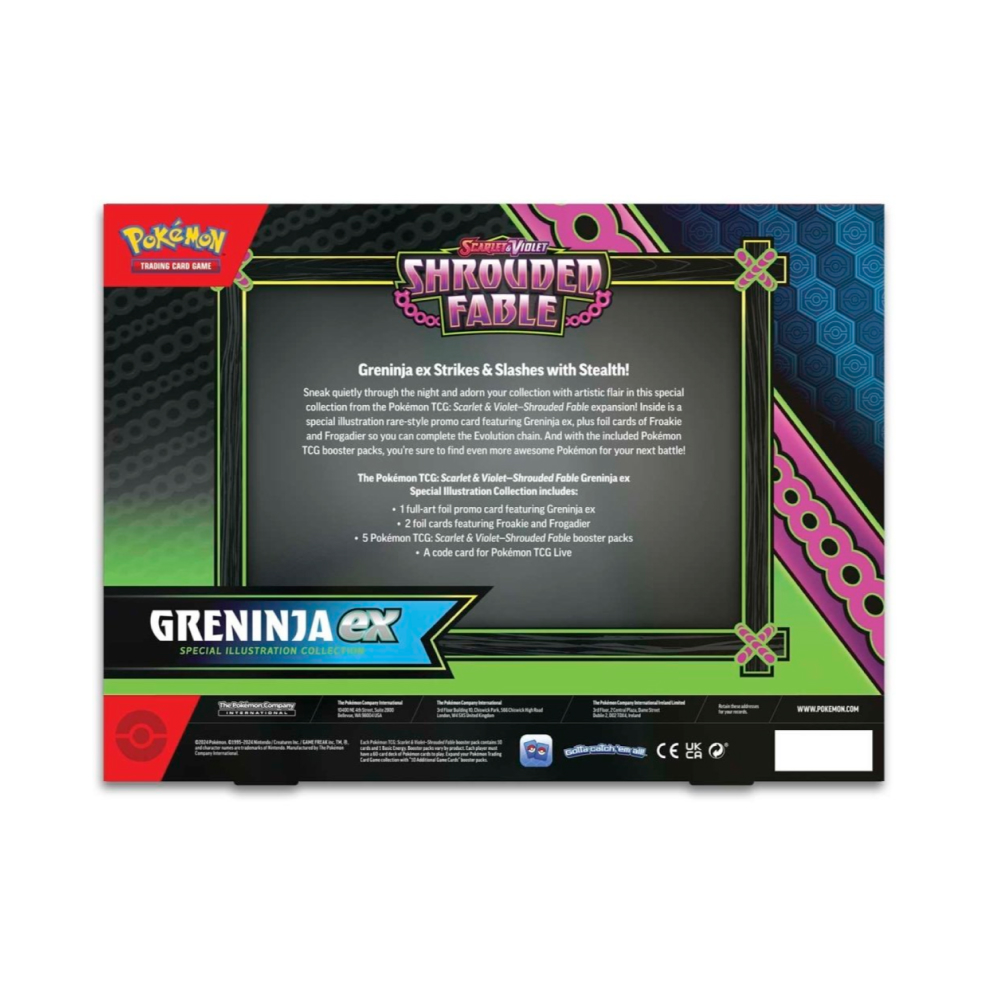 Pokémon TCG Greninja ex Special Illustration Collection - dárkové balení karet Pokémon. Objevte sílu vodního a temného Pokémona Greninji, který má styl ninji! Greninja je známý svou rychlostí a silnými speciálními útoky.