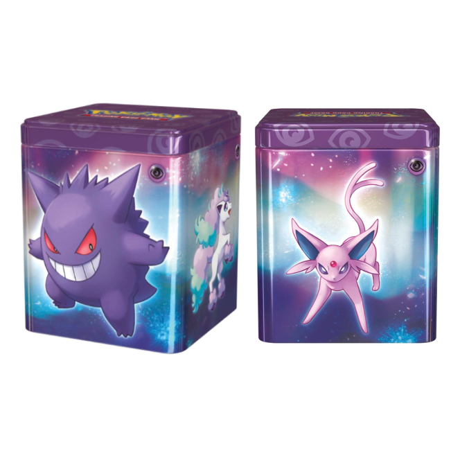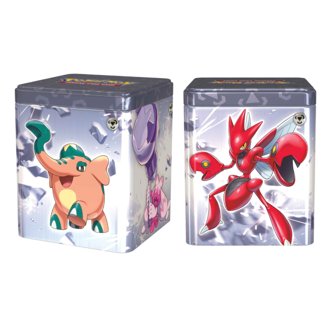 Oblíbená Pokémon Stacking Tin je speciální plechovka karetní hry Pokémon TCG, jejíž výhodou je její kombinovatelnost mezi sebou i s předchozími sety. Plechovky typu Stacking Tin na sebe jdou totiž skládat a zajistí vám tak stylový doplňěk do vaší knihovny, či na poličku a zároveň zajistí dostatek úložného prostoru.