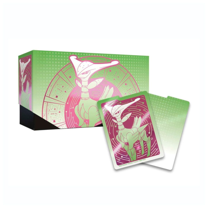 Elite Trainer Box z edice Temporal Forces vychází ve dvou variantách: Walking Wake a Iron Leaves. Zde se jedná o variantu Iron Leaves. Všechny doplňky jsou pak laděny do jedné barvy a k danému Pokémonovi.